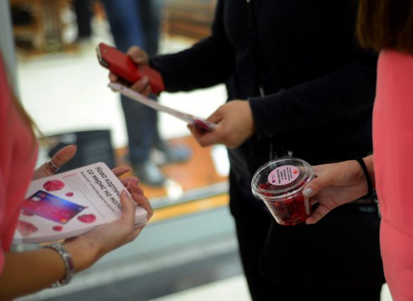 Имено, освен што посетителите имаа можност да се запознаат со придобивките од картичката, беа „почестени“ со чаша свежи малини, како асоцијација на мирисот кој се шири при протривање на одреден дел од картичката.