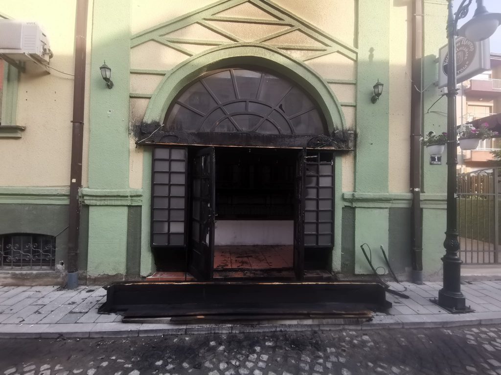 (Фото) Опожарена влезната врата на бугарскиот клуб „Ванчо Михајлов“ во Битола