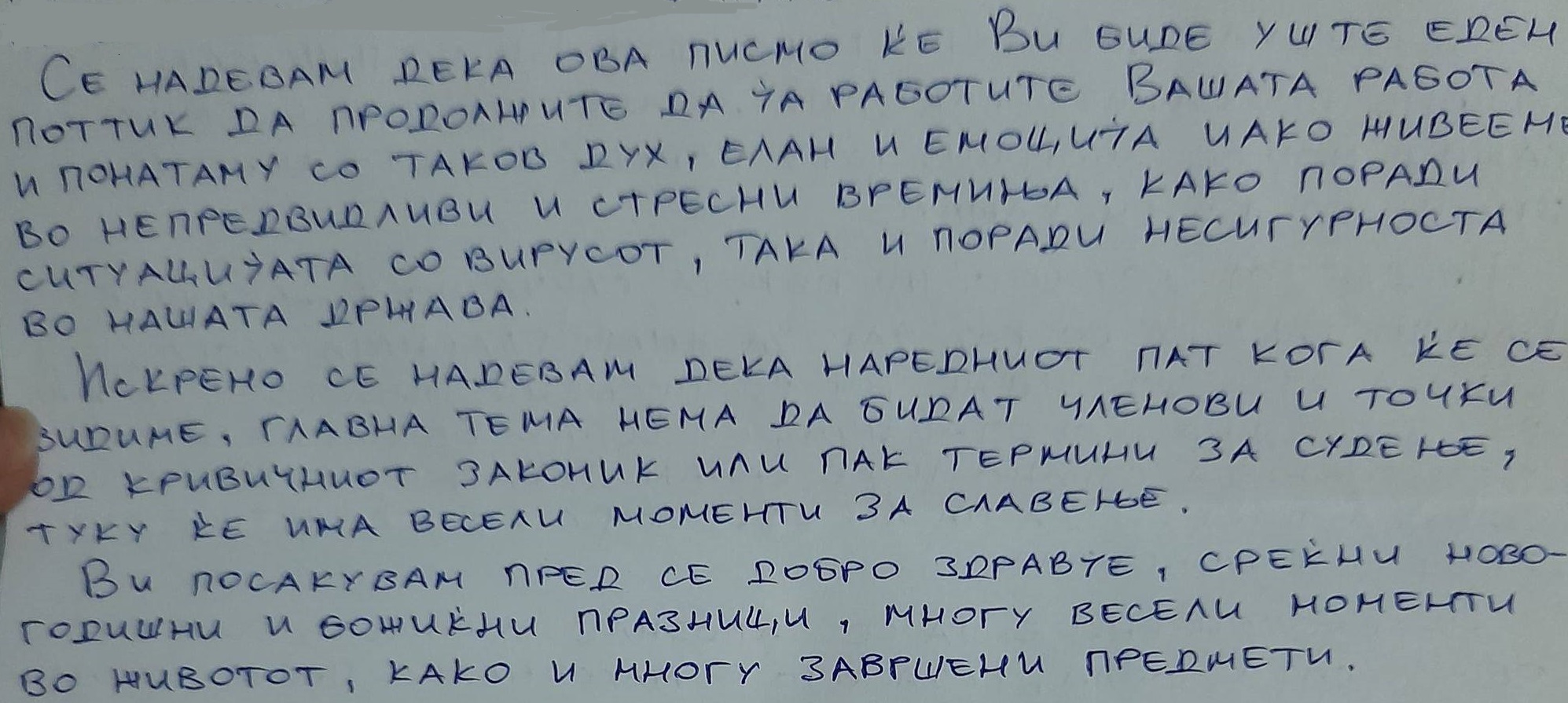 Оттаму додаваат дека за еден таков случај потврда е и новогодишната честитка која деновиве пристигнала до еден обвинител од Основното јавно обвинителство Скопје, а ја испратил осомничен сторител на кривично дело.