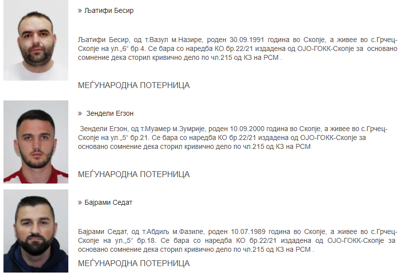 Министерството за внатрешни работи на својата веб – страна објави шест меѓународни потерници за избеганите нарко – босови од Грчец и Гази Баба, осомничени во акцијата „Планина“, која се однесува на трговија со дрога.