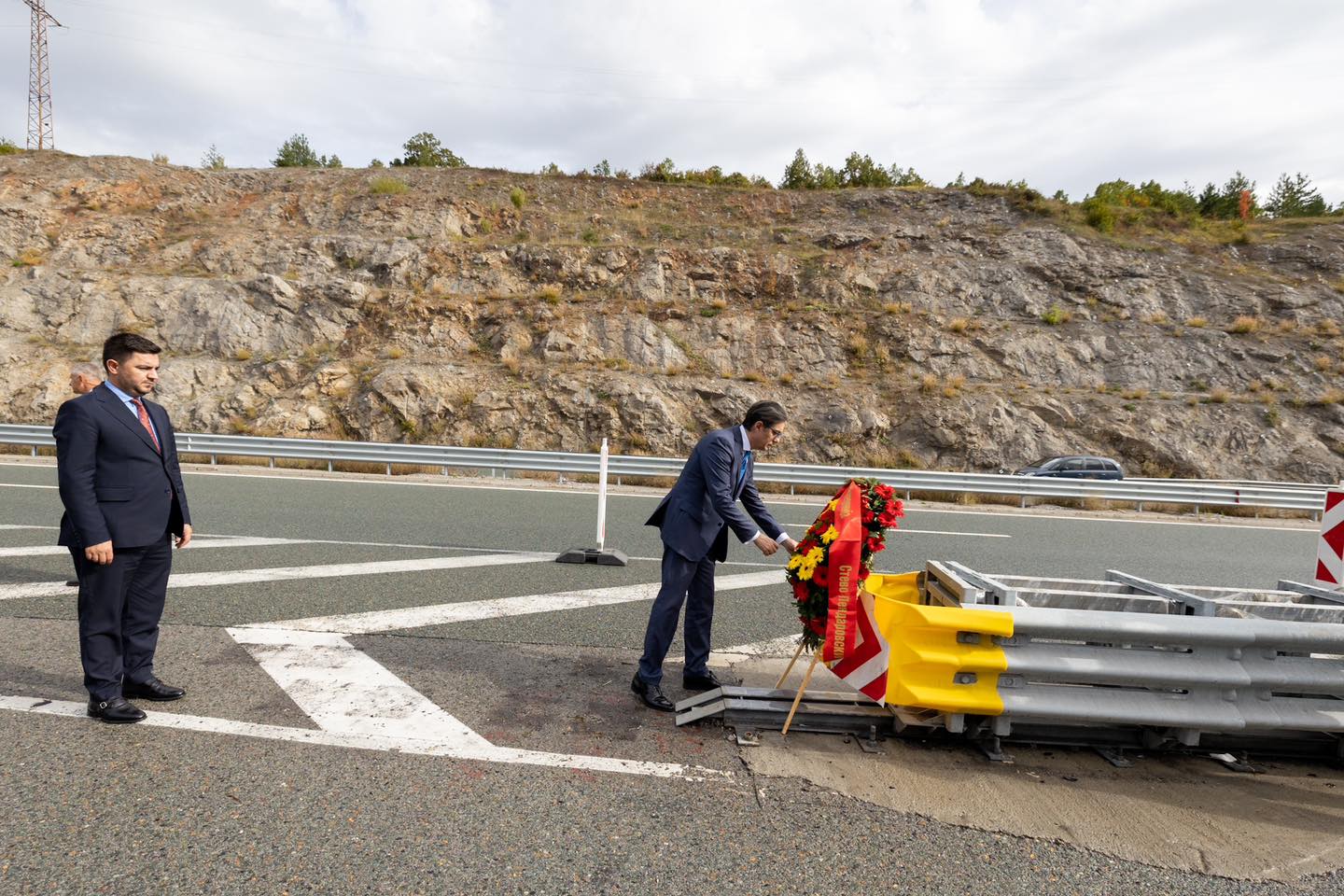 Заедно со шефот на државата, цвеќе на местото на несреќата положи и министерот за економија, Крешник Бектеши.