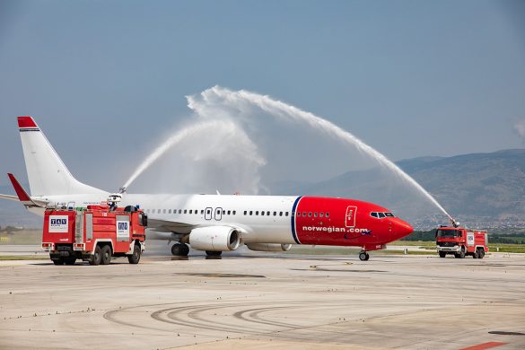 ТАВ Македонија, утринава, со воден мост за добредојде, на Меѓународниот Аеродром Скопје, го пречека првиот лет на скандинавската реномирана авиокомпанија „Норвеџиан ерлајнс“ од Осло, информираат од таму.