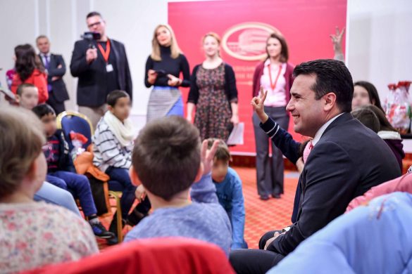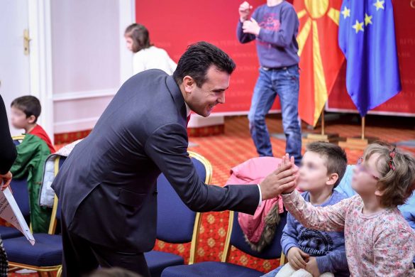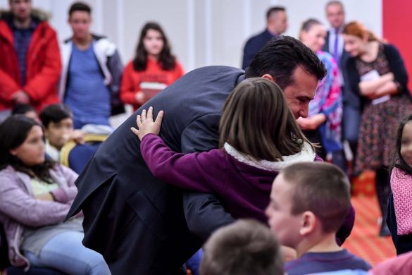Премиерот Зоран Заев денеска денеска им подели пакетчиња и книги на штитениците од домот за Деца без родители „11 Октомври“ и СОС Детско село.