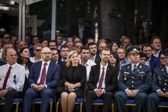 На денешната прослава на Илинден во Крушево присуствуваа премиерот Зоран Заев со сопругата Зорица, министерот за внатрешни работи, Оливер Спасовски, министерот за здравство, Венко Филипче… пратеници, градоначалници, амбасадори, високи воени и полициски лица…
