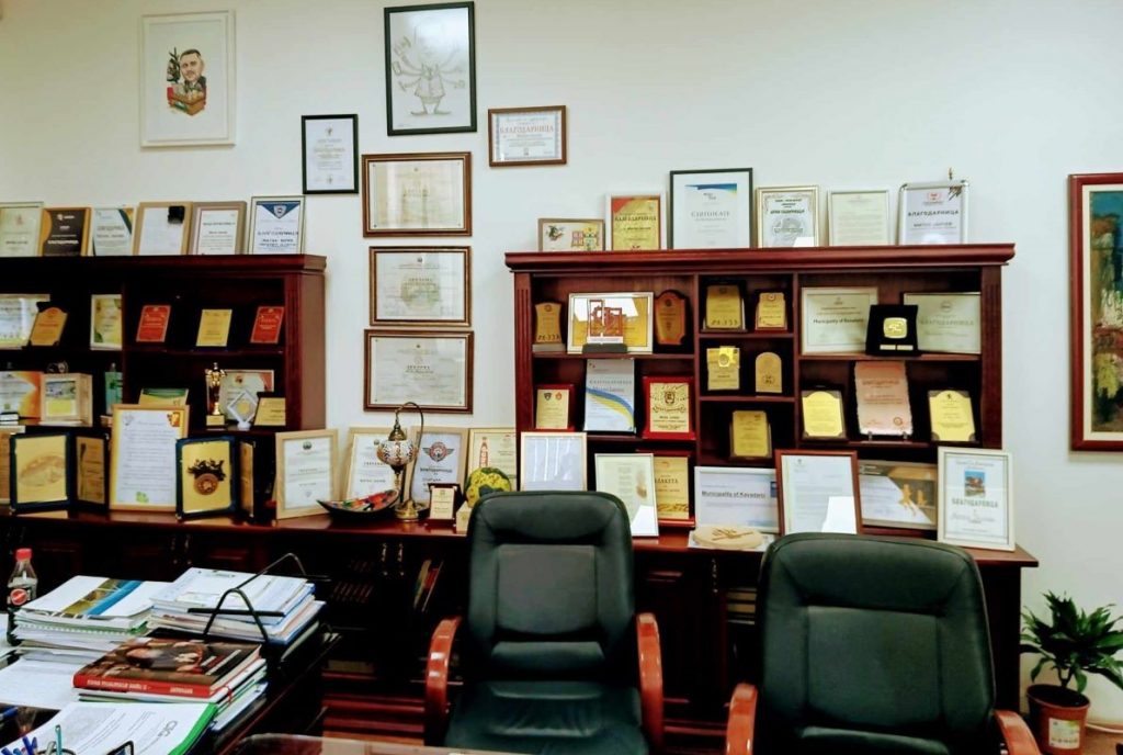 Во неговата канцеларија свое место има и еден од најпознатите македонски сликари Петар Мазев, кој е роден во Кавадарци, како и од Влатко Темков.