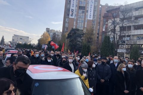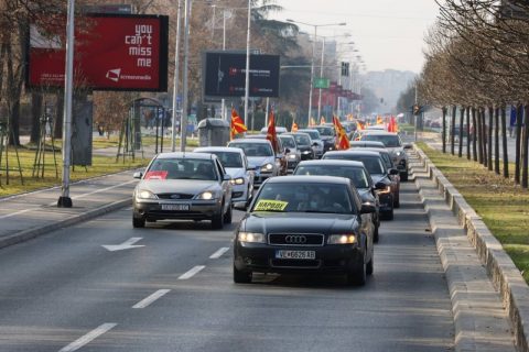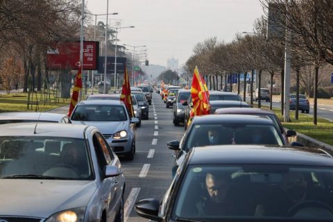 Под мотото „Оставка на Заев, слобода на народот“, членови и приврзаници на ВМРО-ДПМНЕ со автомобили продефилираа во Скопје и одржаа протест пред Владата.