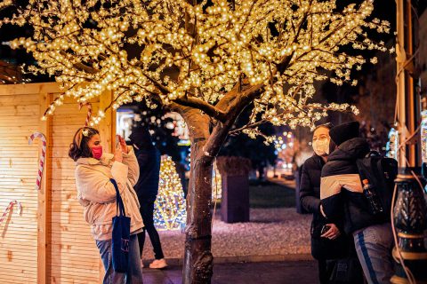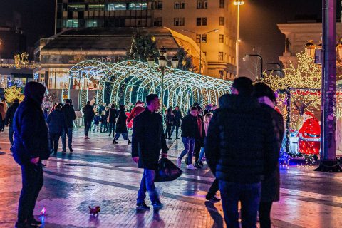Град Скопје на Фејсбук објави фотографии од новогодишната атмосфера. Од нив, може да се забележи дека на истекот на една од најтешките години за нашата држава и воопшто за човештвото поради пандемијата од Ковид-19, сепак има празничен дух и насмевки на лицата на граѓаните.
