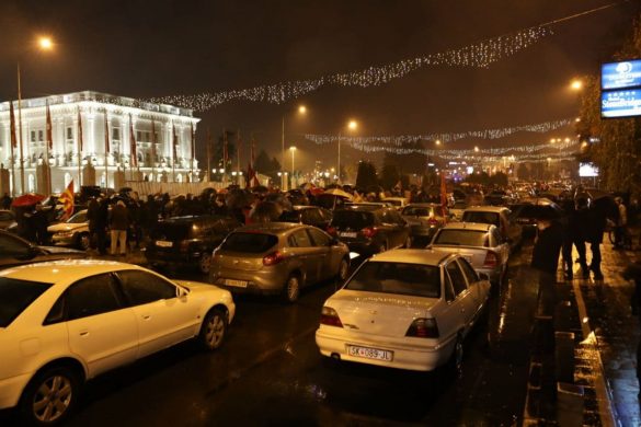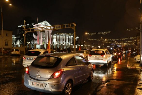 ВМРО-ДПМНЕ вечерва одржа нов протест во Скопје. Со автомобили се движеа од спортскиот центар Борис Трајковски и од салата Јане Сандански до пред Владата.