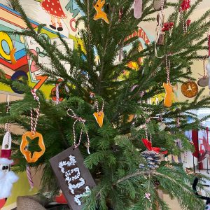 Новогодишна еко елка беше украсена од учениците од 9б одделение од нивните рачно изработени украси од еко материјали (хартија, шишарки, дрвени крукчиња од природни гранки, дрвени лажици, стаклени теглички, кикирики во лушпа, лушпи од портокал, слама, грав, семки, пченица, бибер, ориз, лешници, ореви, природни тиквички, коноп, природен памук, хартиени саксии, плутени тапи, конопна вреќа, тестенини, диви бобинки, цимет стапчиња, звездовиден анасон и сл.).
