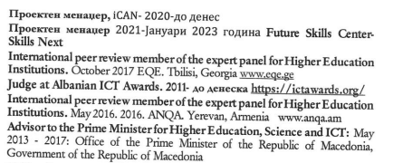 Тој е и магистер по електротехника при Универзитетот “Кирил и Методиј“ во Скопје.