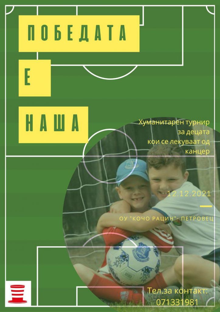 Хуманитарен турнир во фудбал „Победата е наша“ ќе се одржи во спортската сала во ОУ „Кочо Рацин“, Петровец, Скопје на 12 декември со почеток во 11 часот.