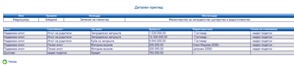 еМагазин го разгледа анкетниот лист на Абедини кој го доставил до Антикорупциска комисија кога станал заменик министер.