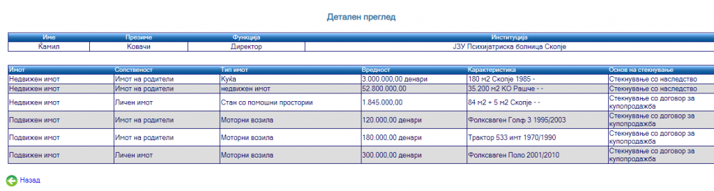еМагазин го разгледа неговиот анкетен лист кој го доставил до Антикорупциска комисија кога бил директор на Психијатриската болница во Скопје.