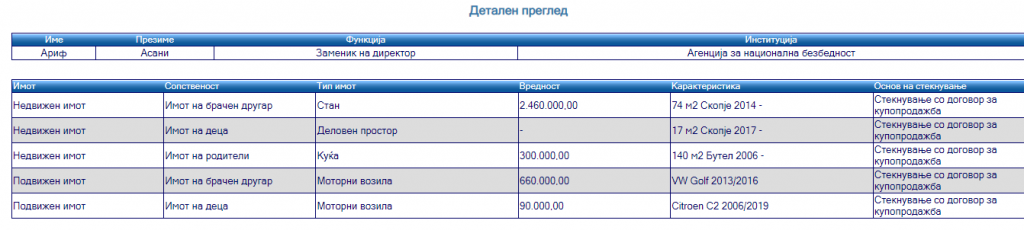 еМагазин го разгледа анкетниот лист на Асани, кој го доставил до Антикорупциската комисија, кога станал заменик директор во Агенцијата за национална безбедност.