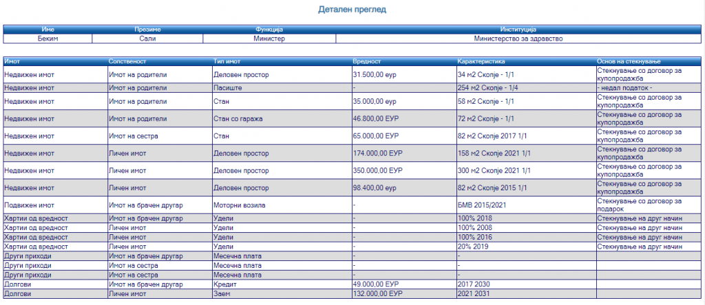 На свое име пријавено и заем од 132 илјади евра, кој треба да го врати до 2031 година.