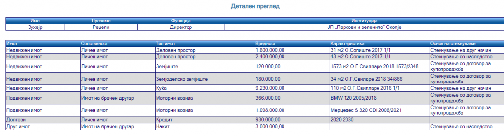 На свое име пријавил и два деловни простори во Сопиште, како и земјиште и земјоделско земјиште во Свиларе.