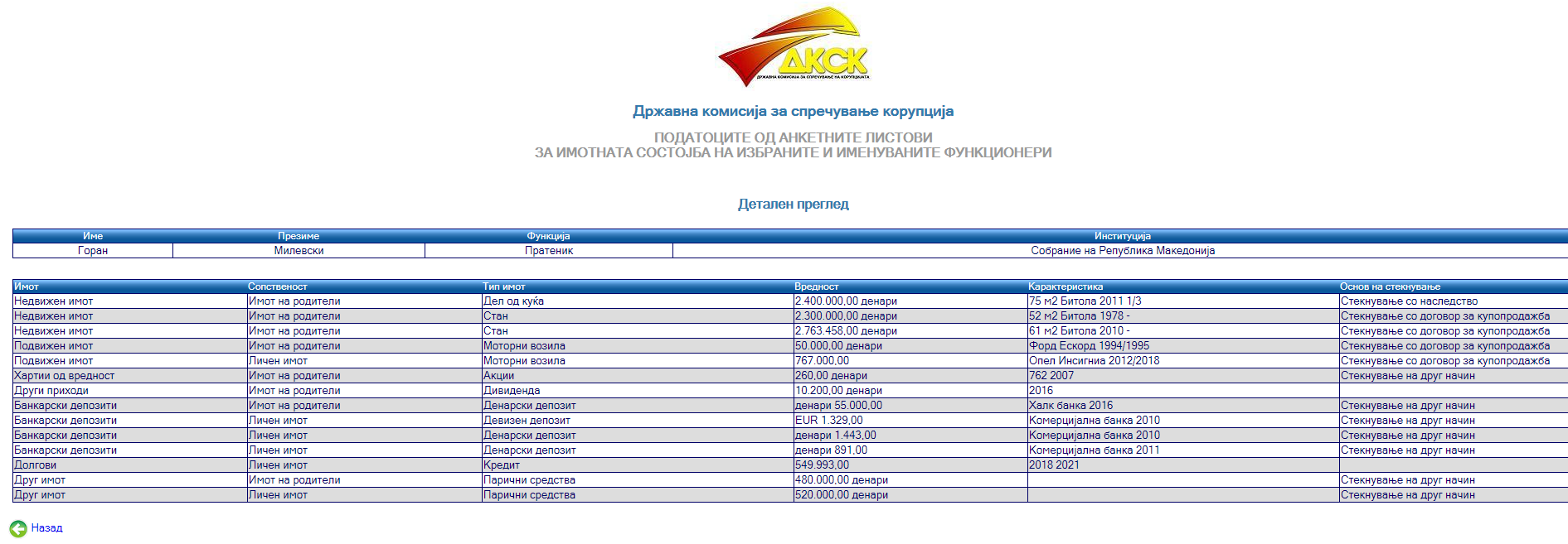 еМагазин го разгледа неговиот анкетен лист кој го доставил до Државната комисија за спречување корупција кога станал пратеник.