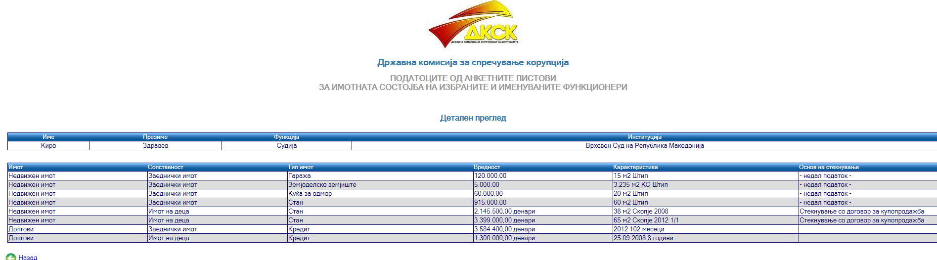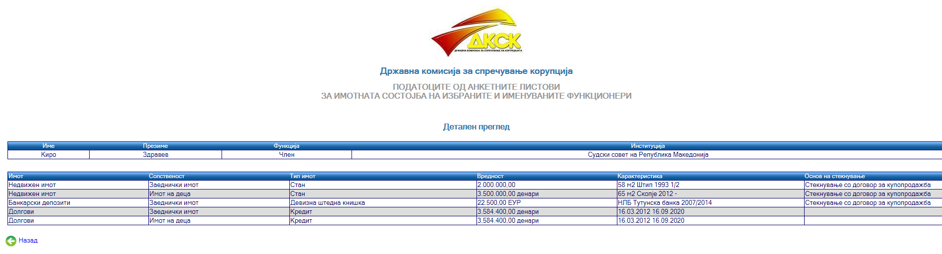 За новиот претседател на Судскиот совет, Киро Здравев на веб страната на Државната комисија за спречување на корупција можат да се најдат два анкетни листа.