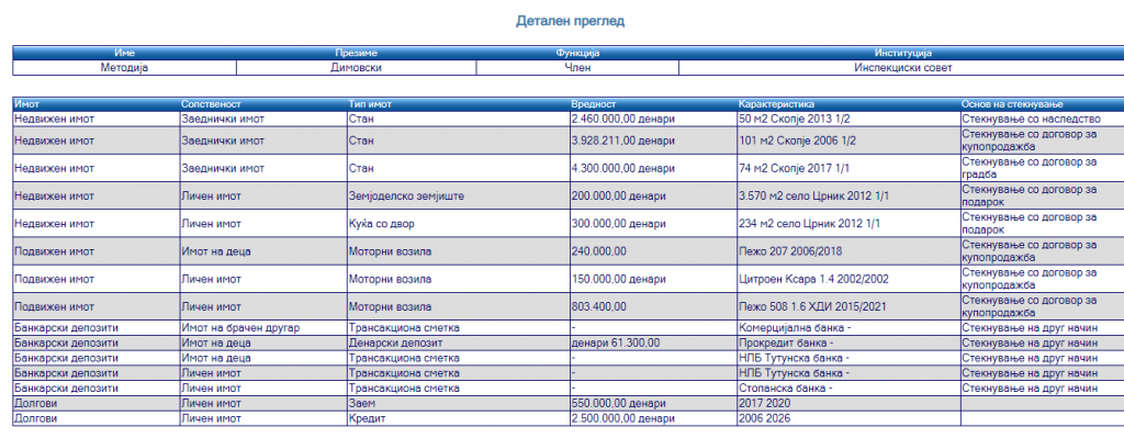 Има и кредит од 2,5 милиони денари, кој треба да го врати до 2026 година.