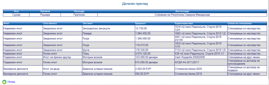 На име на сопругата пријавил уште едно возило, а на име на децата девизна штедна книшка.