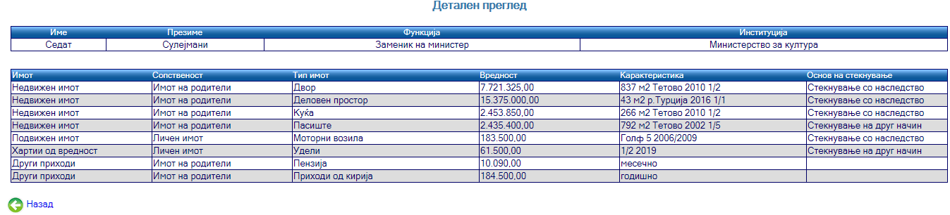 Каков имот пријавил Седат Сулејмани, заменик министерот за култура