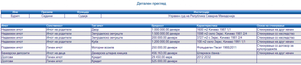 На име на родителите пријавил куќа и земјиште во Зајас, Кичево, а на име на децата денарска штедна книшка.