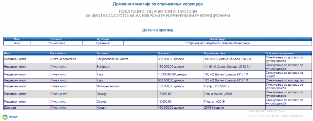 еМагазин го разгледа неговиот анкетен лист кој го доставил до Државната комисија за спречување корупција кога станал пратеник.