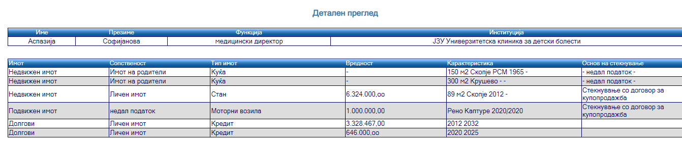 На име на родителите пријавила две куќи, во Скопје и Крушево.