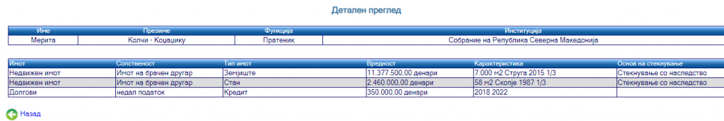 еМагазин го разгледа анкетниот лист на Колчи Коџаџику, кој го доставила до Антикорупциската комисија кога станала пратеничка.