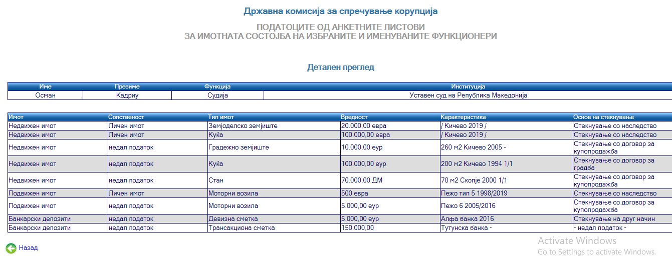 Каков имот пријавиле уставните судии: Ајдари има стан и куќа, а вози Мазда 3