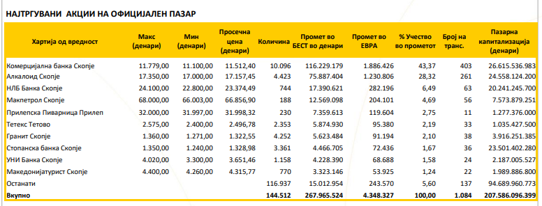 Македонската берза го објави билтенот за декември, а оваа се најтргуваните акции за тој период:
