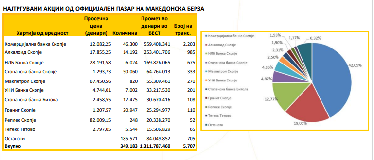 Македонската берза го објави билтенот за првото полугодие, а оваа се најтргуваните акции за тој период: