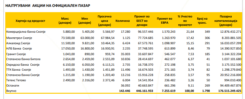 Според месечниот билтен на Македонската берза оваа се најтргуваните акции на Официјалниот пазар во септември: