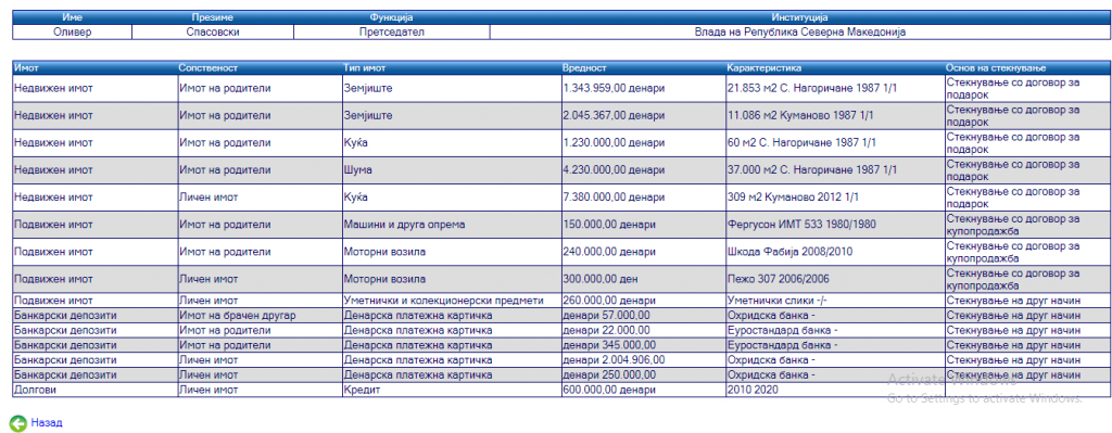 еМагазин прв го објавува анкетниот лист кој Оливер Спасовски, техничкиот премиер и поранешен министер за внатрешни работи го доставил до Антикорупциска комисија откако е претседател на Владата.