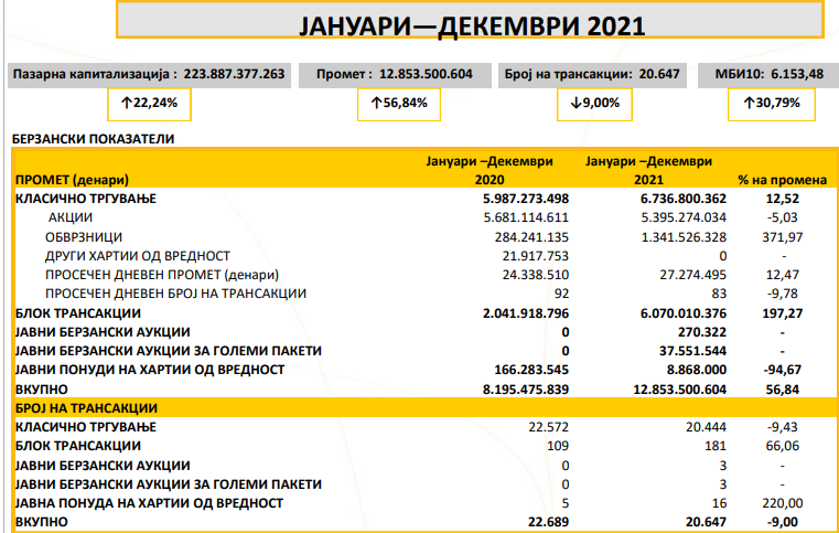 Македонската берза го објави годишниот извештај за минатата година од кој се гледа дека лани имало раст на прометот и пад на бројот на трансакции.