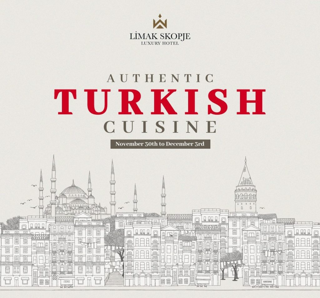 Од 30. ноември до 3. декември 2022 година, Limak Skopje Luxury Hotel ќе биде домаќин на исклучително интересен настан наречен „Автентичниот вкус на турската кујна“, чија амбиција е преку спој од оригинални гастрономски специјалитети и традиционална музика, да се пренесе оригиналната атмосфера на Босфорот овде, во центарот на Скопје, информираат од таму.