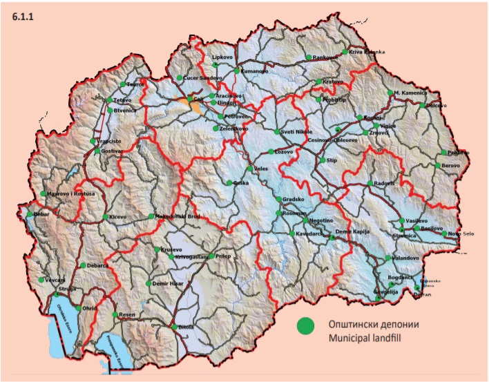 Според податоците на Државниот завод за статистика има 45 таканаречени општински депонии, од кои најголем број (14) се со површина до 5.000 м2 .