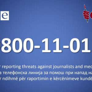 Мисијата на ОБСЕ во Скопје во партнерство со Самостојниот синдикат на новинари и медиумски работници (ССНМ) денес во Скопје на прес-конференција ја промовираше бесплатната телефонска линија 0800-11-011 за помош на новинари во случај на закани, напади и насилство кон новинарите.