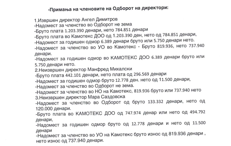 Во годишниот извештај, објавен на Македонската берза, Мода АД Свети Николе ги објави примањата на Одборот на директори: