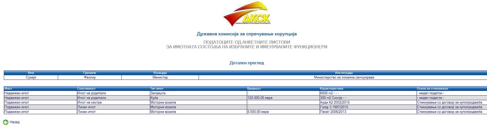 еМагазин го разгледа неговиот анкетен лист кој го доставил до Државната комисија за спречување на корупција, кога станал министер.
