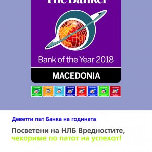 За најдобра банка во Македонија за 2018 година е прогласена НЛБ Банка. Ова е деветти пат како НЛБ Банка ја добива оваа престижна награда и го потврдува приматот на најнаградувана банка во Република Македонија.