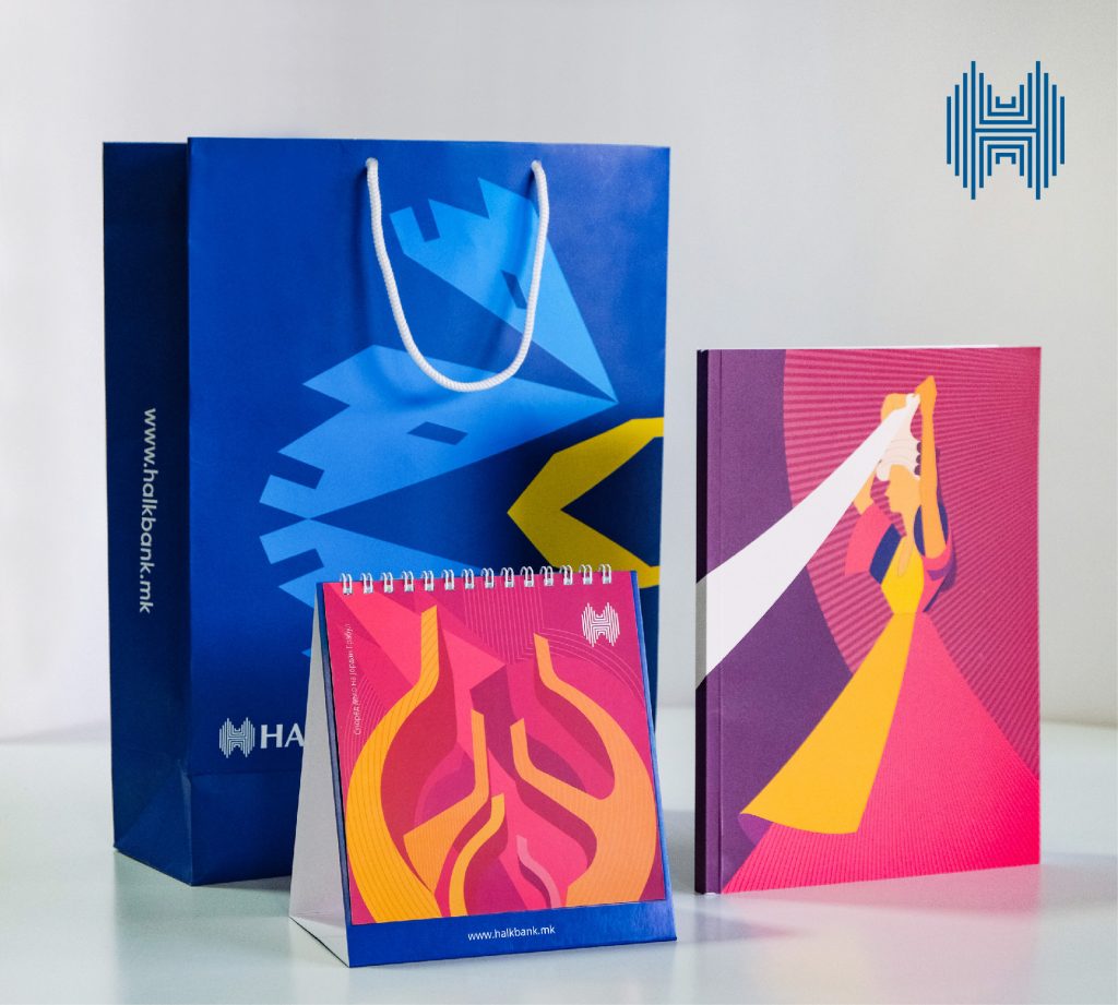 Убавината на традицијата, археологијата и уметноста се инспирација на нашето корпоративно брендирање. Инспирирани од традицијата, археологијата и уметноста, со графички израз и современ пристап, ја пренесуваме пораката за вистинските вредности и важноста за нивната афирмација – стои во пораката за празничниот брендинг на банката, велат од Халкбанк.