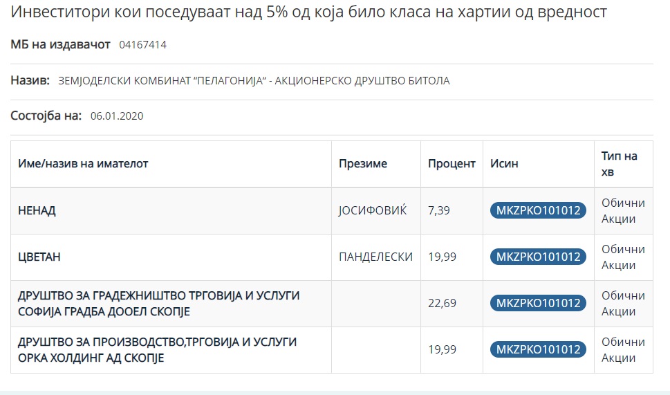 Камчев и Панделески директно или преку нивни фирми поседуваат над 51 отсто од капиталот во ЗК „Пелагонија“ така што станува јасно дека продажбата е речиси завршена работа.