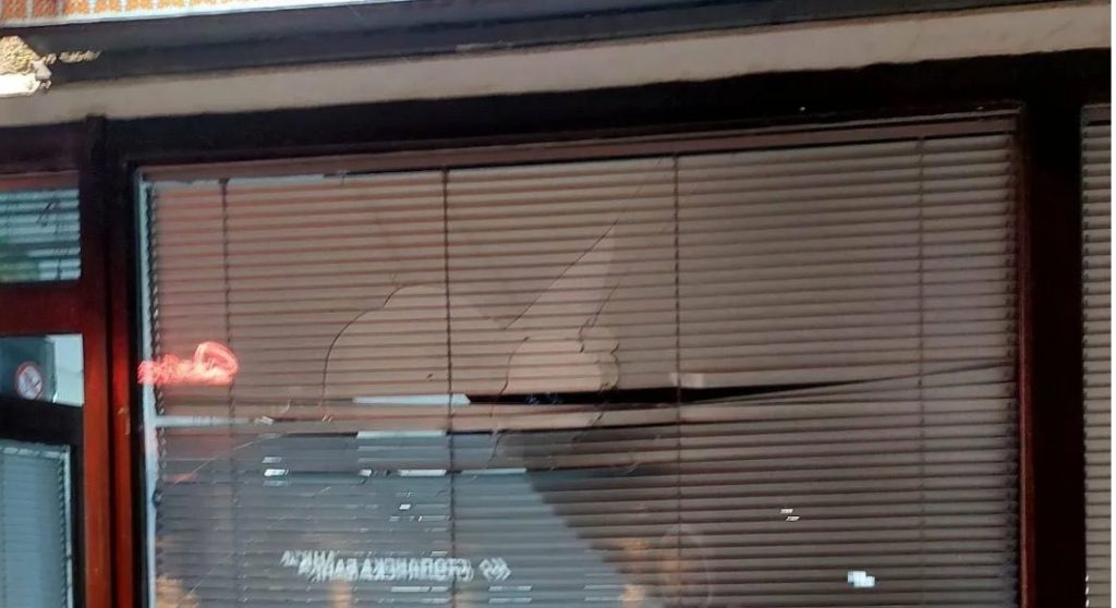 Оштетено е стаклото и дел од светлечката реклама на бугарскиот клуб „Цар Борис трети“ во Охрид.