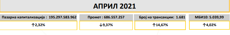 Македонската берза го објави билтенот за април, во кој се регистрира пад на прометот за 9,37%.