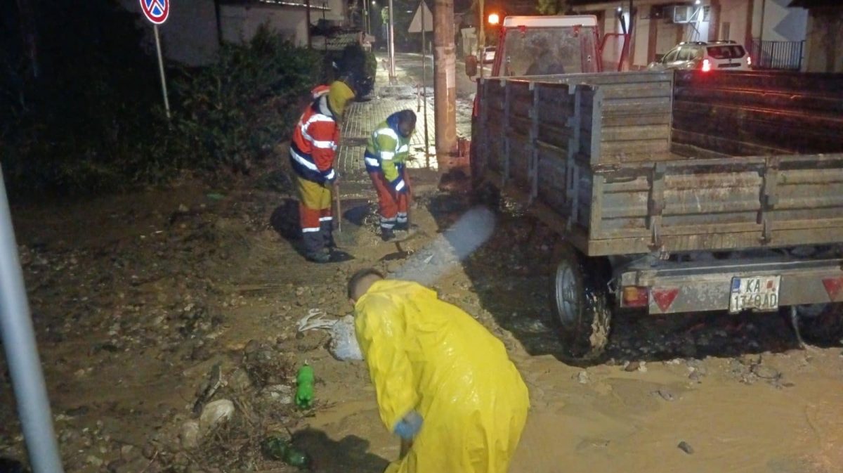 – Од синоќа се излезени екипи на ЈП „Комуналец” со механизација од три скипови, два камиона, три трактори и 20 работници. Се расчистува наносот, наталожените решетки и сливници и со три цистерни се перат улиците од калта.