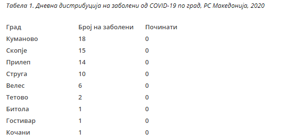 (Табела) Најмногу заразени со Ковид-19 во Скопје, Куманово, Дебар, Штип и Прилеп