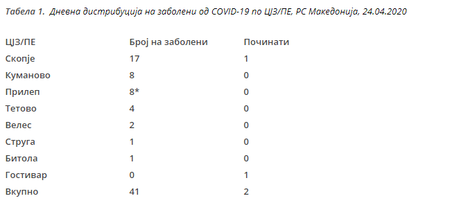 “Тестирани се вкупно 728 материјали во лабораториите во кои се спроведува молекуларно тестирање за присуство на SARS-CoV-2, од кои позитивни се 41.