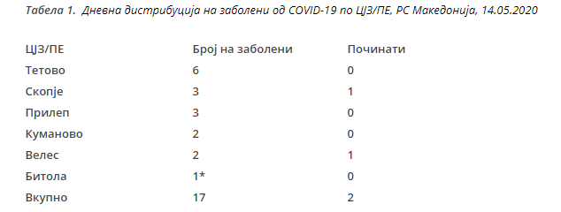 Од Министерството за здравство вчера информираа за 17 нови случаи на заразени со коронавирусот.
