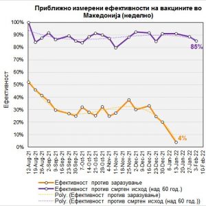 Третите дози од вакцините малку ја поткренале ефективноста, а сега oмикрон сојот малку ја поднамалил, но во основа не заблежуваме големи разлики во ефективноста, односно вакцините сé уште добро штитат против смртен исход, речиси цела година од почетокот на масовната вакцинација.